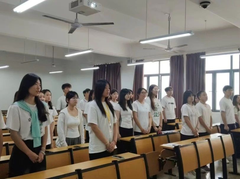 随着主持人宣布入团仪式正式开始,全体与会人员庄严肃立,齐唱国歌。激昂的旋律点燃了现场每个人的热情,也拉开了入团仪式的序幕。