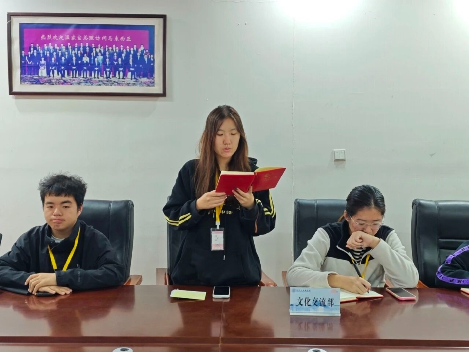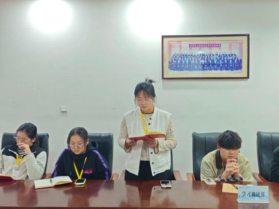 李月主席补充发言。她强调,要聚焦工作细节优化,提升活动策划的创新性与落地效率,加强部门间沟通协作,鼓励干部以身作则,在服务同学中锤炼自身本领,以实干践行学生干部的责任担当。